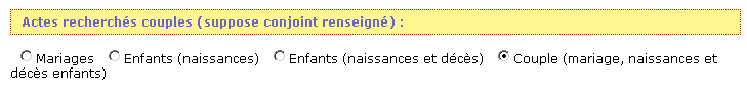 B) Recherche de couples (Prérequis : compléter le champ conjoint)